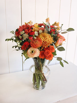 Nos bouquets de fleurs de teintes orangées sont une danse harmonieuse entre le feu et le soleil, un véritable spectacle de couleurs vibrantes qui apportera énergie et vitalité à tout espace. Les nuances de pêche, abricot et ambre s'entrelacent dans une chorégraphie florale enchanteresse, éveillant vos sens et apportant une note joyeuse à votre environnement.